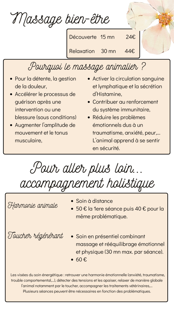 Je suis formée en cosmétologie, en observant la peau et la fourrure de votre animal, j’opterai pour un soin adéquate et vous recommanderai le cas échéant de vous tourner vers votre vétérinaire.